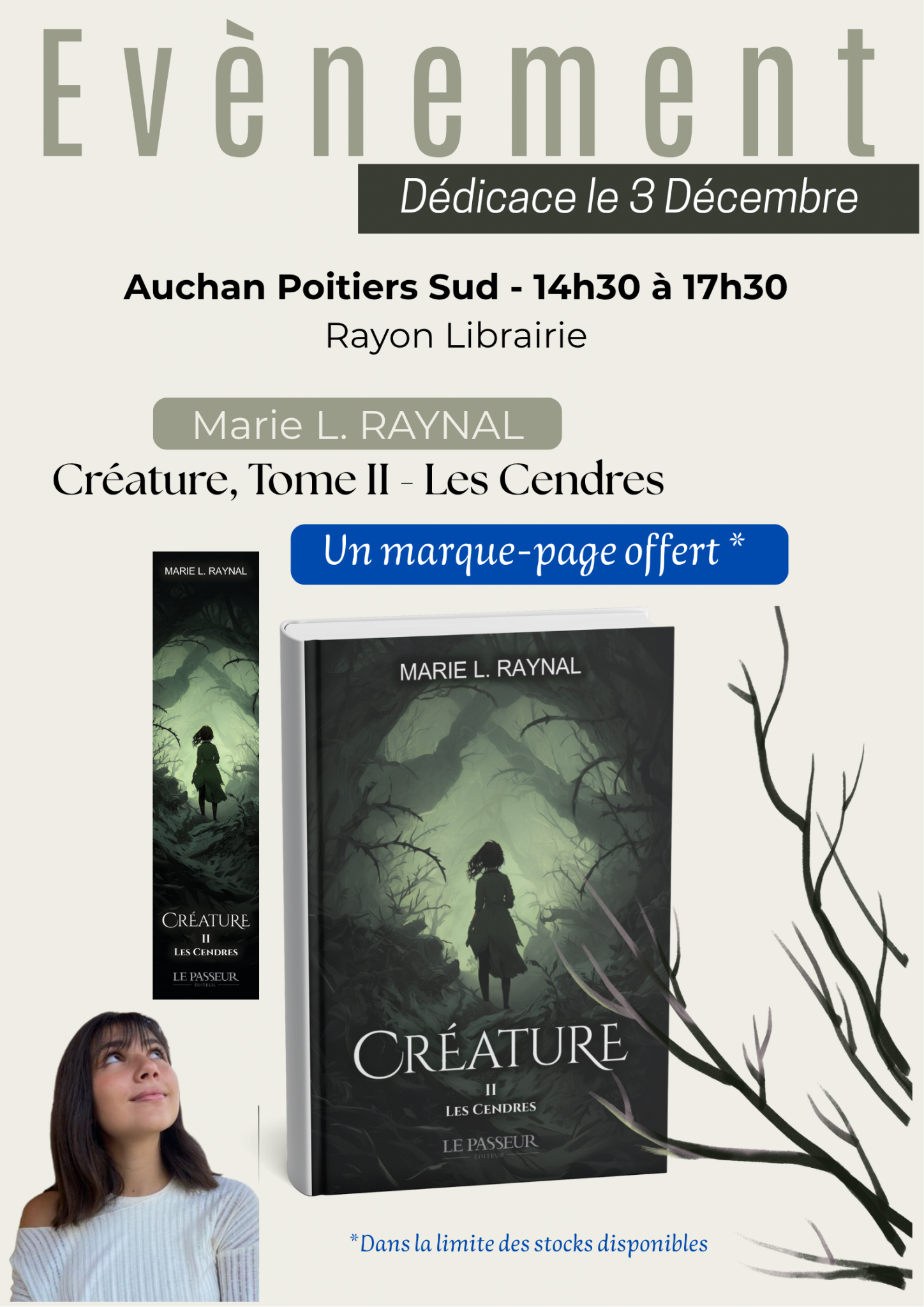 Je serai le mercredi 3 Décembre de 14h30 à 17h30 à Auchan Poitiers Sud
